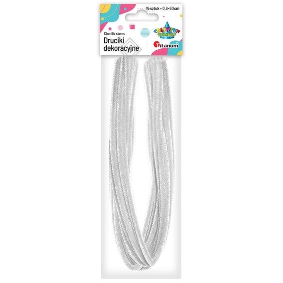 Druciki kreatywne. Kolor: biały, długość: 50 cm, szerokość: 0,6 cm. 15 sztuk.