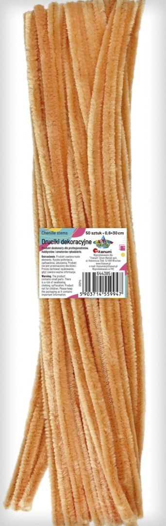 Druciki kreatywne, kolor: jasnobrązowe, długość: 30 cm, szerokość: 0,6 cm. 50 sztuk.