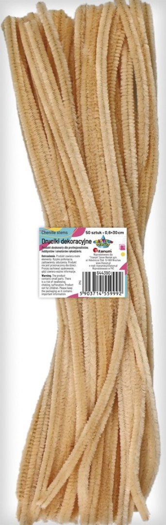 Druciki kreatywne, kolor: cieliste, długość: 30 cm, szerokość: 0,6 cm. 50 sztuk.