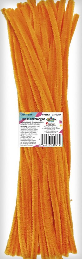 Druciki kreatywne, kolor: jasnopomarańczowe, długość: 30 cm, szerokość: 0,6 cm. 50 sztuk.