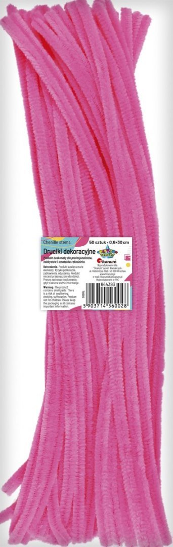 Druciki kreatywne, kolor: mocny różowy, długość: 30 cm, szerokość: 0,6 cm. 50 sztuk.
