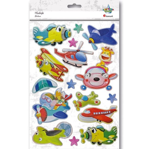 Naklejki wypukłe miękkie. Wzór: samoloty. 16 sztuk.