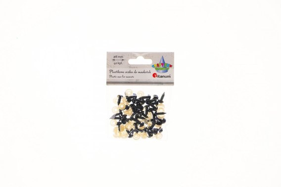 Oczy do maskotek, czarne, średnica 8 mm, z mocowaniem za pomocą zapinki. 40 kompletów.