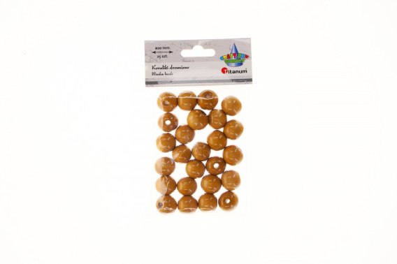 Koraliki drewniane, okrągłe, 20 mm, lakierowane jasnobrązowe. 25 sztuk.