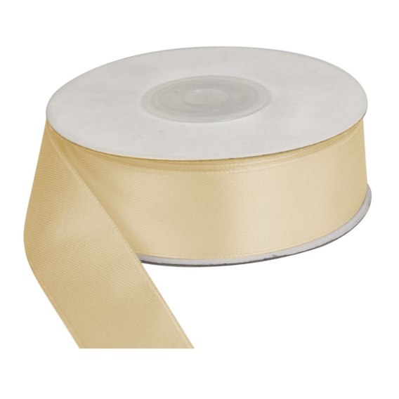 Wstążka satynowa na szpuli, kolor: kremowy, 25 mm x 25 m.